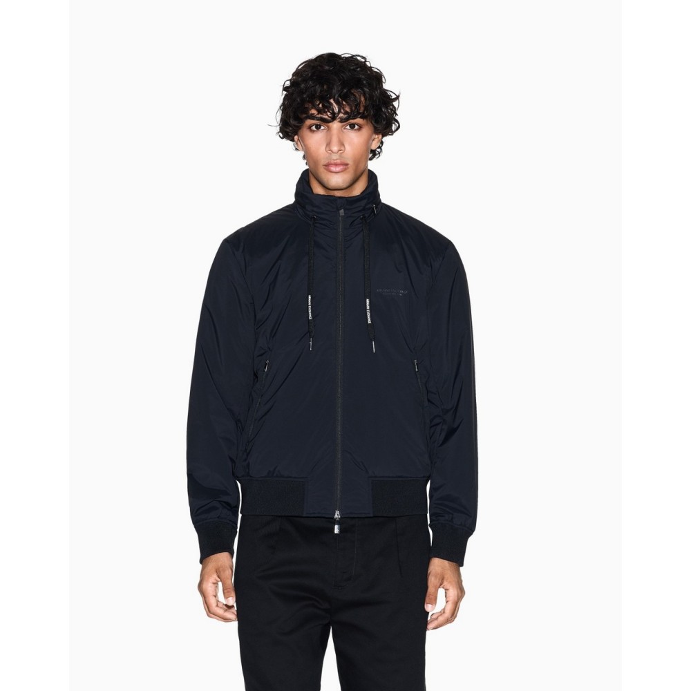 Giubbino realizzato in un leggero tessuto, il capo perfetto per affrontare le giornate più imprevedibili con uno stile dinamico e contemporaneo. Questo giubbino si distingue per il suo collo alto con coulisse logate regolabili, un dettaglio funzionale che aggiunge un tocco urban e distintivo. La chiusura frontale con zip e le pratiche tasche laterali con zip ne definiscono il design essenziale. Il discreto logo "Armani Exchange Milano / New York" stampato sul petto firma il capo con un'identità inconfondibile.