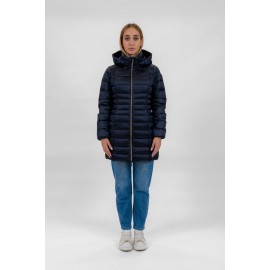Realizzato in nylon dalla finitura lucente, il piumino animal-free Reese ha la linea lunga trapuntata con motivo orizzontale. Dotato di cappuccio e tasche basse zippate, il modello si distingue per il tirazip personalizzato e il logo gommato sulla manica sinistra, entrambi tono su tono.