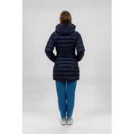 Realizzato in nylon dalla finitura lucente, il piumino animal-free Reese ha la linea lunga trapuntata con motivo orizzontale.