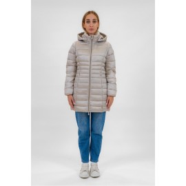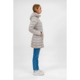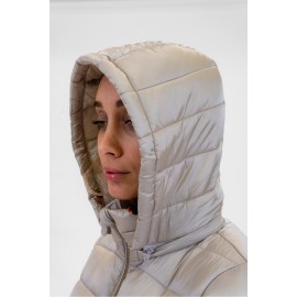 Realizzato in nylon dalla finitura lucente, il piumino animal-free Reese ha la linea lunga trapuntata con motivo orizzontale. Dotato di cappuccio e tasche basse zippate, il modello si distingue per il tirazip personalizzato e il logo gommato sulla manica sinistra, entrambi tono su tono.