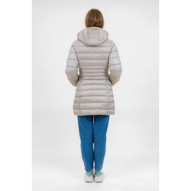 Realizzato in nylon dalla finitura lucente, il piumino animal-free Reese ha la linea lunga trapuntata con motivo orizzontale.