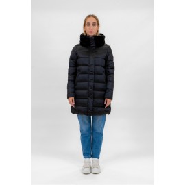 Il piumino Dalea si distingue per la linea ad A e il collo alto in pelliccia sintetica en pendant. Il modello trapuntato e imbottito si chiude con una zip a doppio cursore nascosta da una patta con bottoni per un look pulito e lineare.