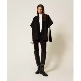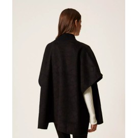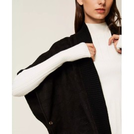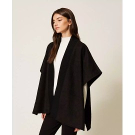 Poncho in panno con logo Oval T embossed all over. Ha apertura rifinita in maglia a coste e bottoni con Oval T ai fianchi.