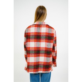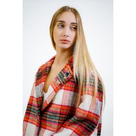 Giacca donna Dixie in lana, fantasia quadri, vestibilità over, dettaglio con spille.