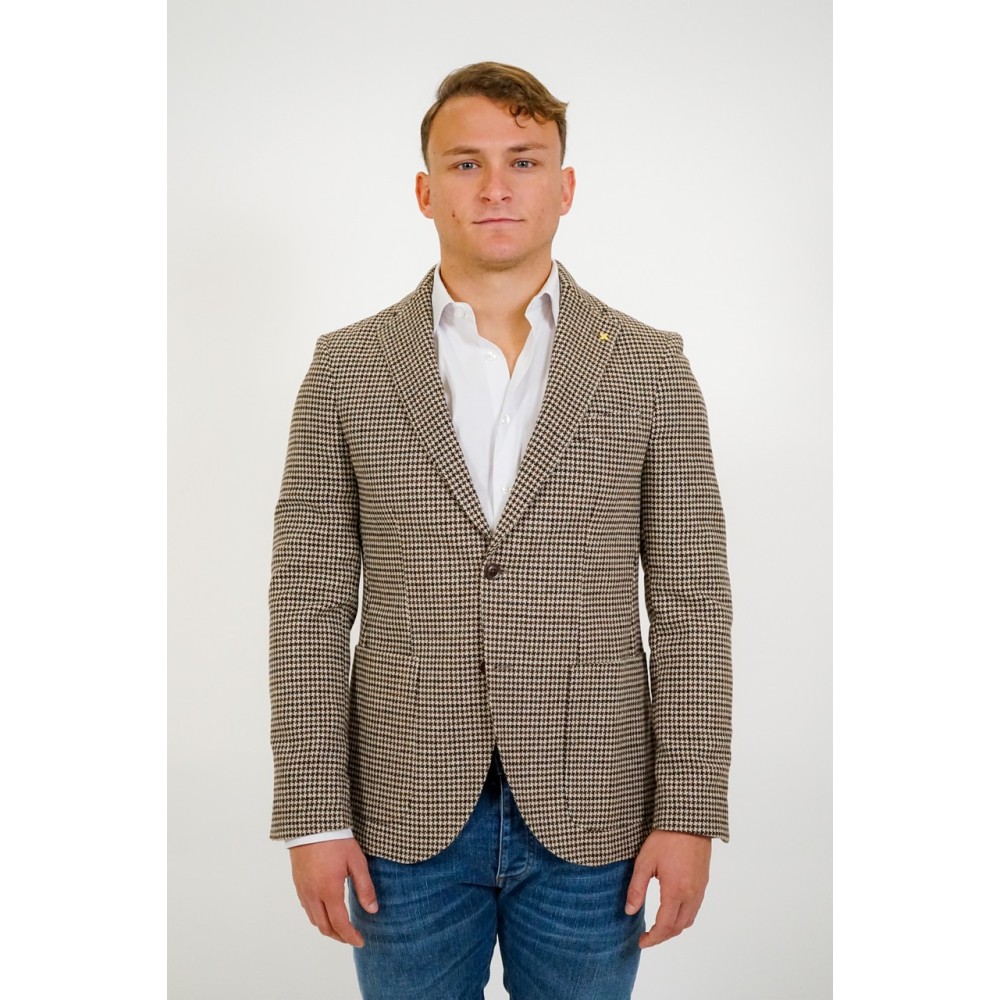 Giacca uomo monopetto Alessandro Gilles a fantasia. Manica lunga, vestibilità slim. Il modello indossa la tg 50.