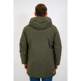 Parka uomo tinta unita con cappuccio, chiusura con zip, tasche frontali,vestibilità regular. Il modello indossa la tg L.
