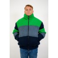 Giubbino full maglia multicolor Iceberg, chiusura con zip, collo vulcano, tasche a filetto, vestibilità regular, logo tinta su tinta sul braccio.