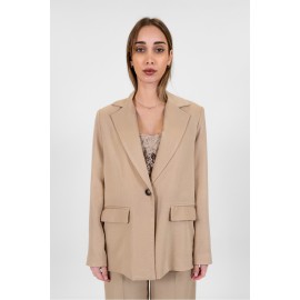 Giacca donna Haveone over-size, tinta unita, monopetto, spacco sul retro con dettaglio in pizzo. La modella indossa la tg XS.