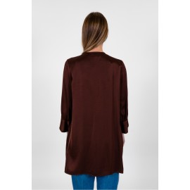 Spolverino donna Dixie tinta unita , effetto in raso, manica lunga, vestibilità regular. La modella indossa la tg S.