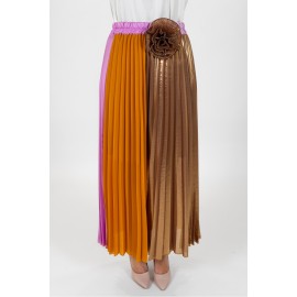 Gonna donna Dixie multicolor plissè, elastico in vita, applicazione spillo sul cinturino, vestibilità regular. La modella indossa la tg S.