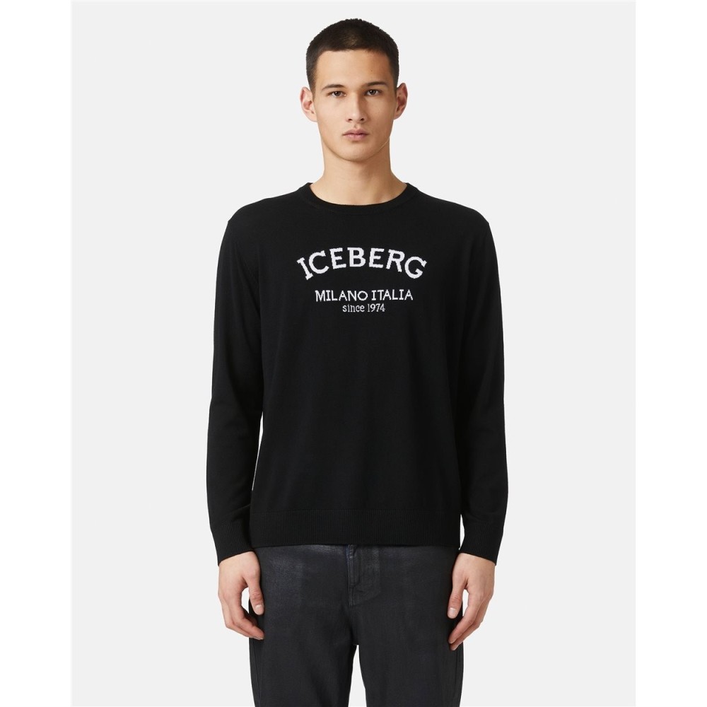 Maglione nero caratterizzato da una nuova vestibilità regular fit. Questo capo è realizzato in filato di merino extrafine per un comfort e una morbidezza superiori. La semplice lavorazione rasata calato offre un look pulito e raffinato, mentre l'intarsio del logo istituzionale Iceberg a contrasto colore sul centro davanti aggiunge un tocco distintivo e di classe. Perfetta per un look sofisticato ma disinvolto.