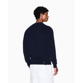Maglione girocollo realizzata in morbido cotone, caratterizzata da una distintiva lavorazione a micro costine orizzontali che crea un effetto texturizzato super cool.