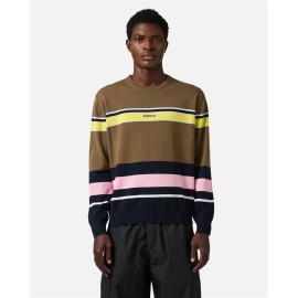 Maglia girocollo multicolor in cotone con righe che attraversano busto e maniche, definite dalla lavorazione calata. Sul davanti, il logo Iceberg è inserito al centro della riga superiore, creando un dettaglio grafico distintivo. Un capo che unisce comfort, dinamismo e identità grafica.