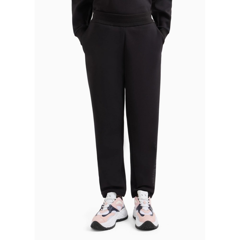 Questi pantaloni jogger sono realizzati in tessuto stretch dalla mano morbida. Il modello presenta decorazione con strass che compongono il naming Armani Exchange.