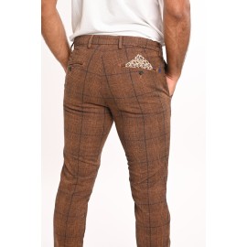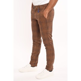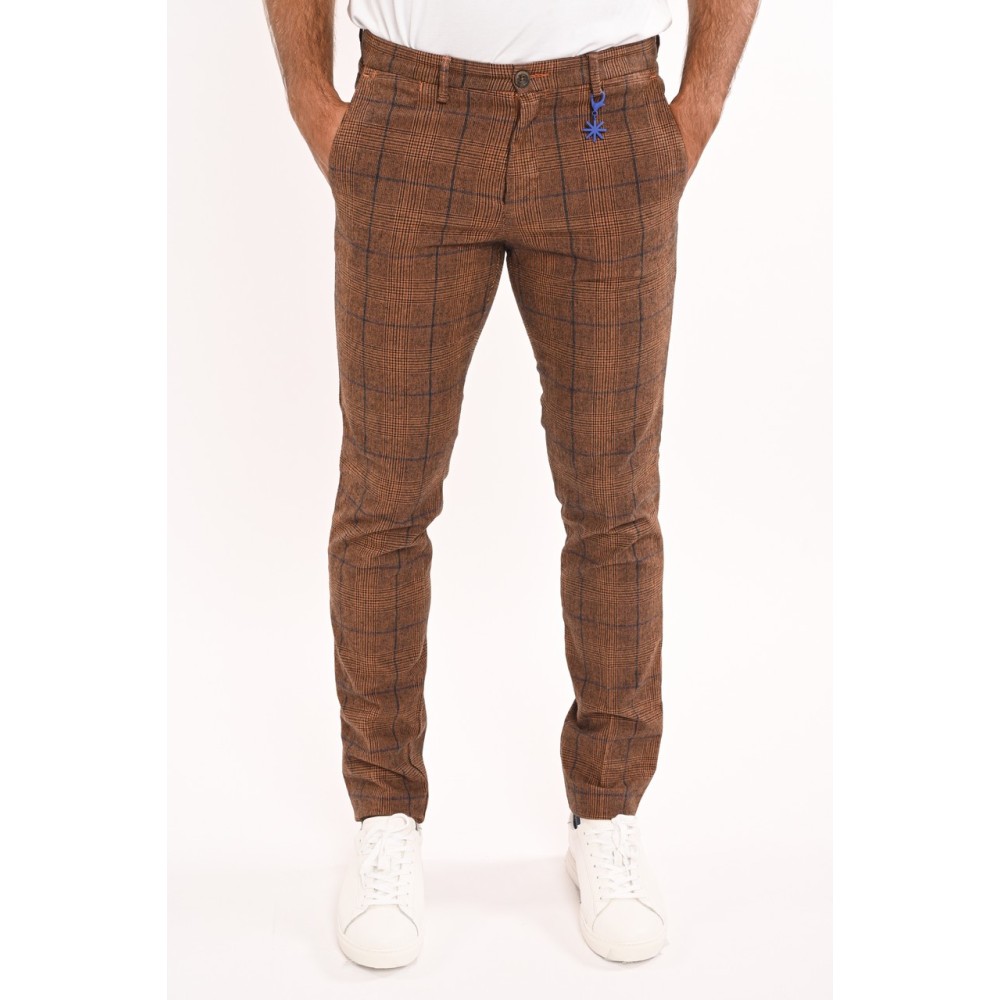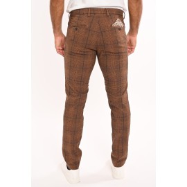Pantalone uomo Manuel ritz principe di galles, tasca a filo, chiusura con zip e bottone, dettaglio pochette nella tasca sul retro.