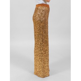 Pantalone donna con pailettes Dixie, a palazzo, elastico in vita rivestito in raso, vestibilità morbida.