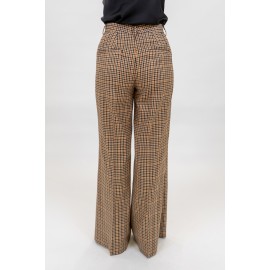 Pantalone donna Dixie a quadri, modello a zampa, chiusura con zip e clip,tasca america, vestibilità slim.