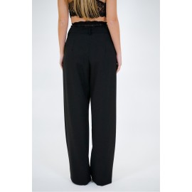 Pantalone donna Haveone a palazzo con pences, dettaglio pizzo in vita, tasca america, chiusura con zip e bottone, vita alta. La modella indossa la tg XS.