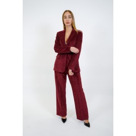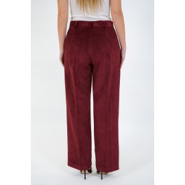 Pantalone donna in velluto a palazzo, vita alta, tasca america, chiusura con zip e bottone, vestibilità regular. La modella indossa la tg 40.