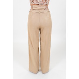 Pantalone donna Haveone tinta unita a palazzo, vita alta con pizzo, chiusura con zip laterale. La modella indossa la tg XS.