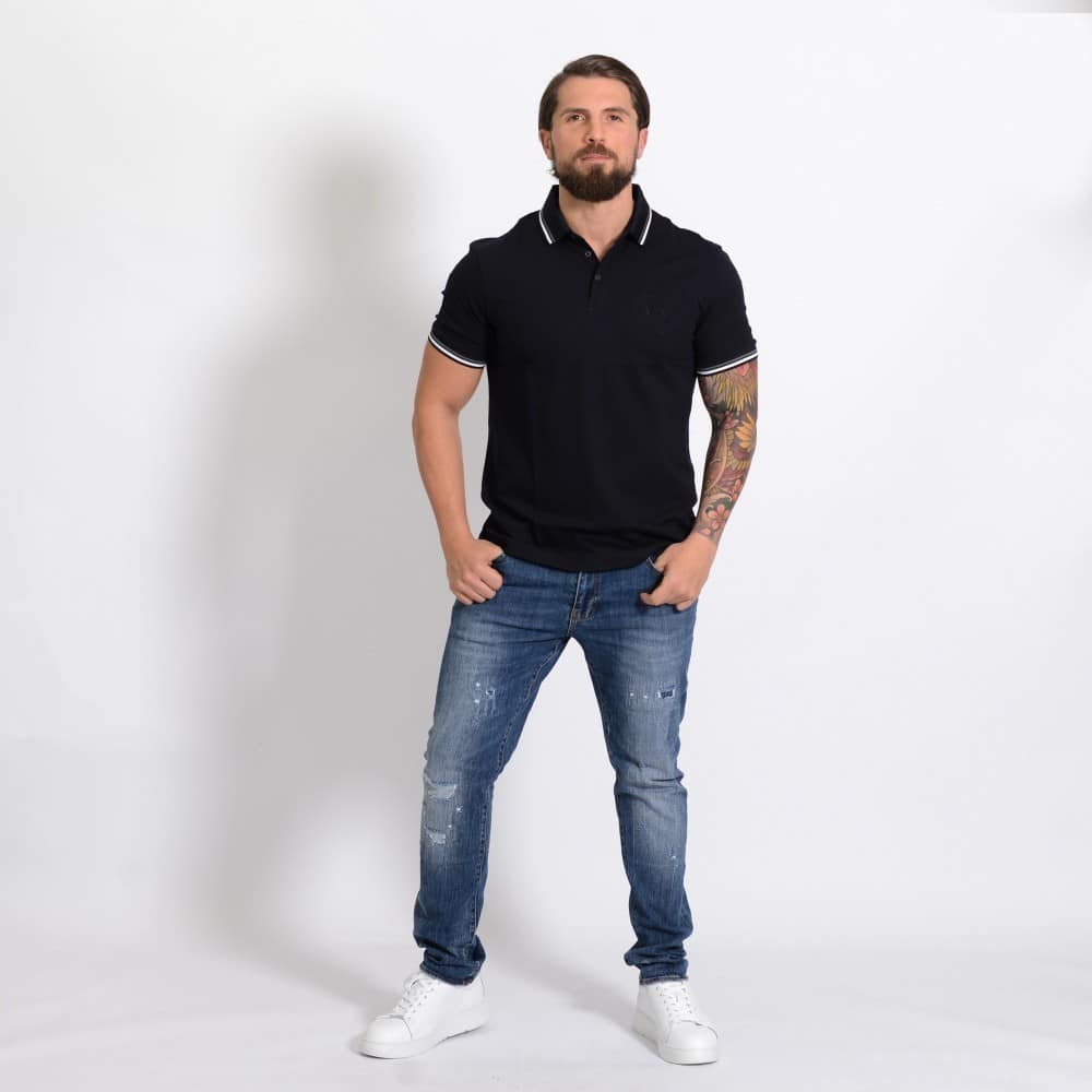 Polo uomo Armani exchange in piquet, con logo in tinta e contrasto bordino su collo e maniche.