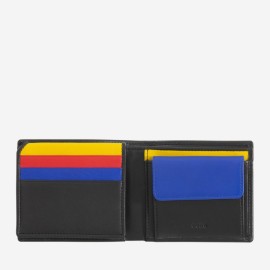 Portafoglio uomo piccolo RFID in vera morbida pelle di vitello. Cuciture in contrasto, interno multicolore e tasca portamonete. Una versione ridotta del classico portafoglio da uomo.