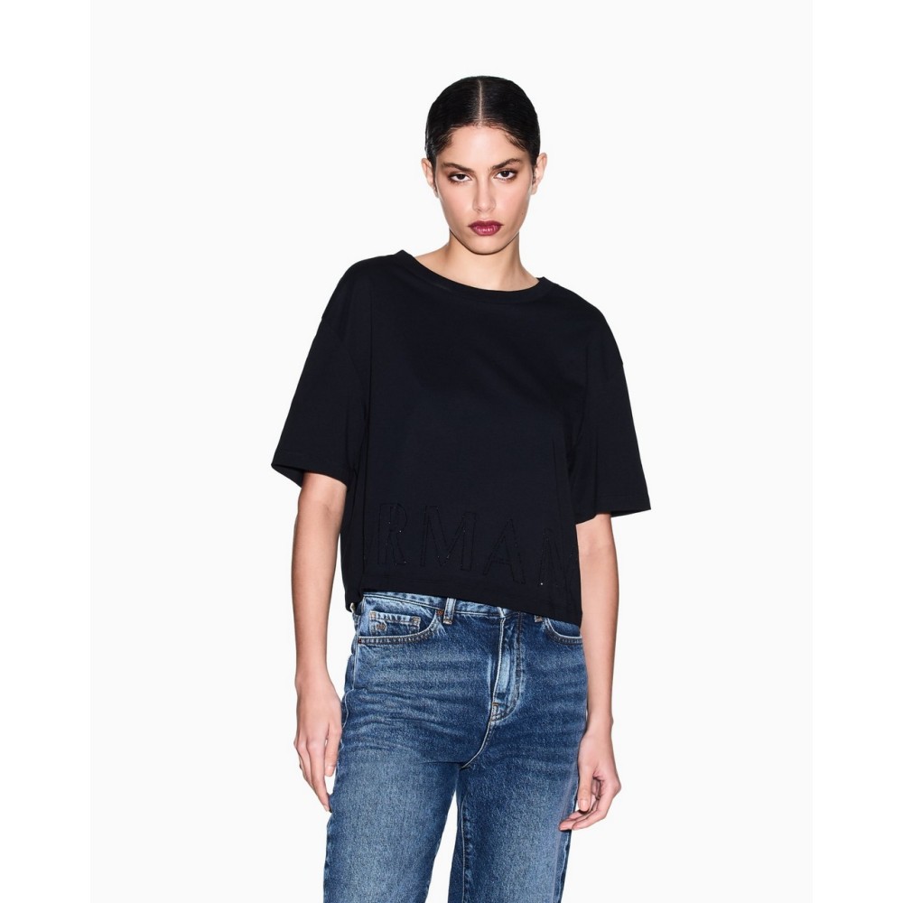 Cropped T-shirt Armani exchange dalla linea essenziale ma distintiva, ideale per uno stile giovane e disinvolto.