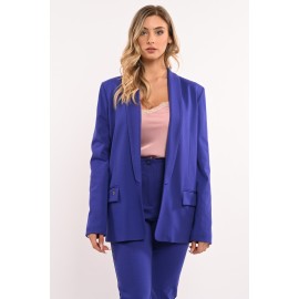 Blazer collo sciallato, tasca con patta. Leggins vita alta, tasca a filetto, chiusura con bottone e zip.