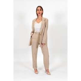 Tailleur donna Dixie tinta unita, giacca monopetto con vestibilità over, chiusura con bottone. Pantalone tinta unita a sigaretta, chiusura con zip bottone e gancio. La modella indossa la tg XS.