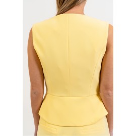 Gilet donna Silence Limited tinta unita con bottoni in contrasto oro, doppiopetto, scollo quadrato.