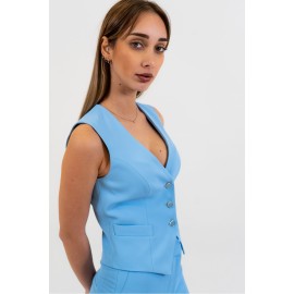 Gilet donna Silence limited con bottoni in contrasto, vestibilità slim, tinta unita, la modella indossa la tg XS.