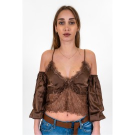 Top donna in raso con manicotti Haveone