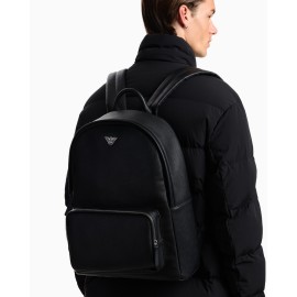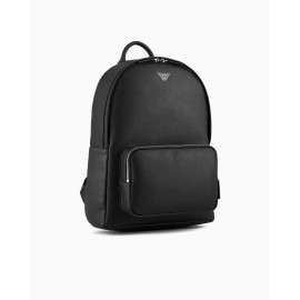 Zaino modello roundshape in pelle rigenerata di materiale riciclato certificato. Ogni prodotto realizzato in pelle rigenerata è il frutto di un processo ecosostenibile che sfrutta il riutilizzo delle rimanenze delle pelli, lavorate e assemblate in totale assenza di colla e con attenzione al risparmio idrico.La riduzione di spreco di risorse contribuisce a renderlo un materiale eco-compatibile a basso impatto ambientale che mantiene però le stesse qualità, alla vista e al tatto, della pelle vera. Una collezione di accessori nata per soddisfare l'esigenza dell'uomo Emporio Armani che richiede una perfetta coesione tra stile e workwear, grazie ad un design essenziale e di charme caratterizzato da un finish stampa saffiano e personalizzato dal logo aquila sagomato e traforato in metallo.